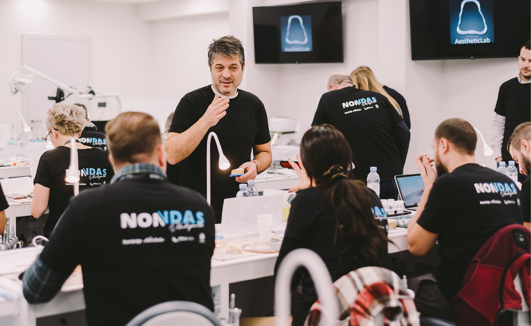 Prvi dan, Nondas Vlachopoulos će započeti sa 2-3 satnim predavanjem o estetici I specifičnostima različitih keramičkih radova (Feldspathic veneers-Zirconia-Pressables), nakon čega slijedi LIVE demonstracija stratifikacije One Bake Technique, objašnjenje tehnologije, morfologije, mikro i makrostrukture oblikovanja površine i tehnike poliranja. Drugi dan, polaznici je kreirati svoj vlastiti model, prema uputama i mentorstvom Nondasa.